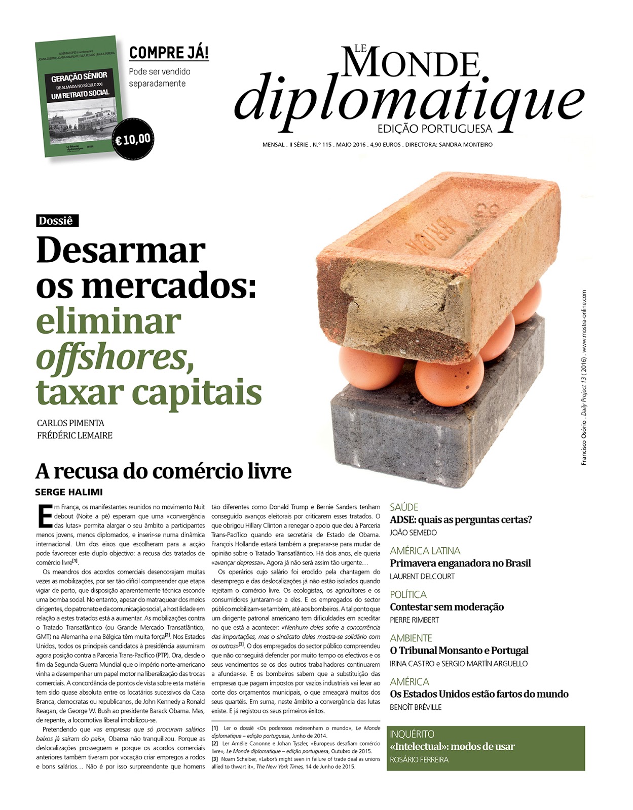 Se uma Europa diferente é possível, ela só poderá ser construída a partir de revoltas cidadãs que rejeitem esta lógica interminável e a obsessão de gente que ninguém elegeu. O caminho percorrido pela geringonça (que belo conceito que a direita nos forneceu!) é ainda muito modesto. Mas já chegou para indicar um sentido para a política de esquerda, feito de direitos e auto-determinação, dois pilares fundamentais de qualquer democracia. Não mais dependeremos da bondade de comissários. Será feita a nossa vontade.»